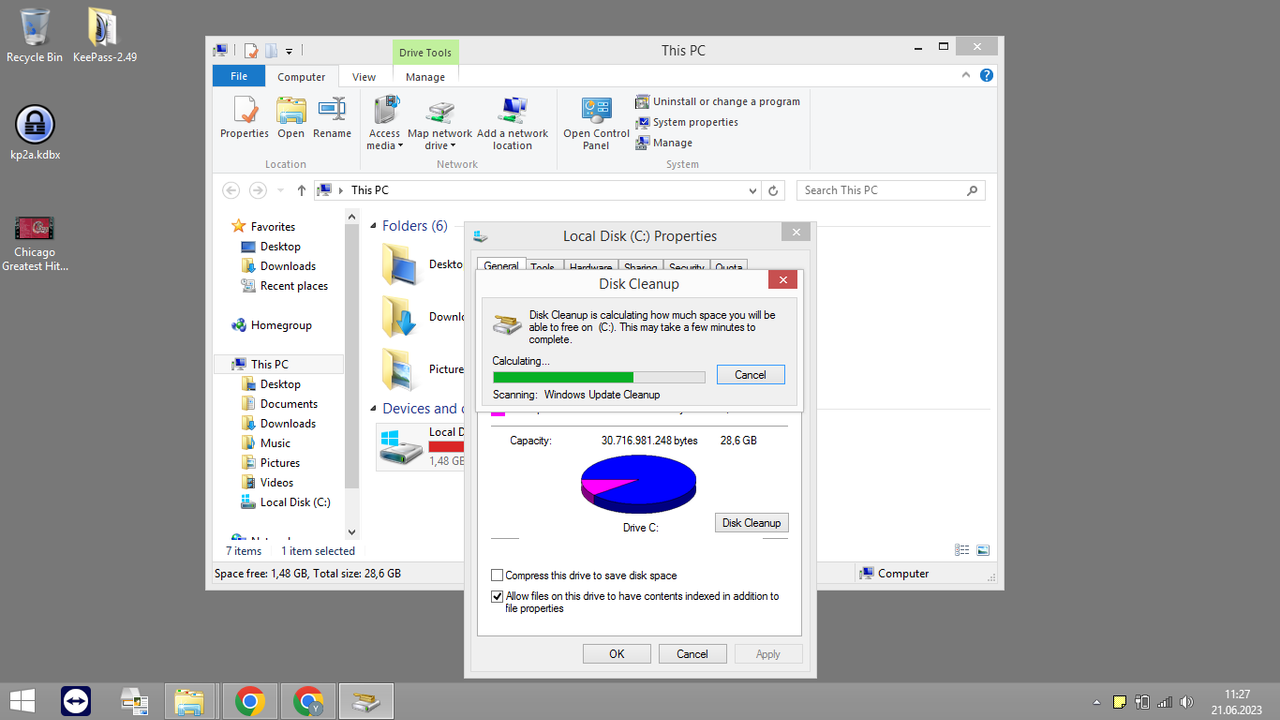 Mein kleines Netbook ist halt echt schon sehr alt. Hat insgesamt nur 30 GB Speicherplatz, und habe da zuletzt ständig die Warnung bekommen, dass kein Speicherplatz mehr vorhanden ist, obwohl ich möglichst viel gelöscht habe.