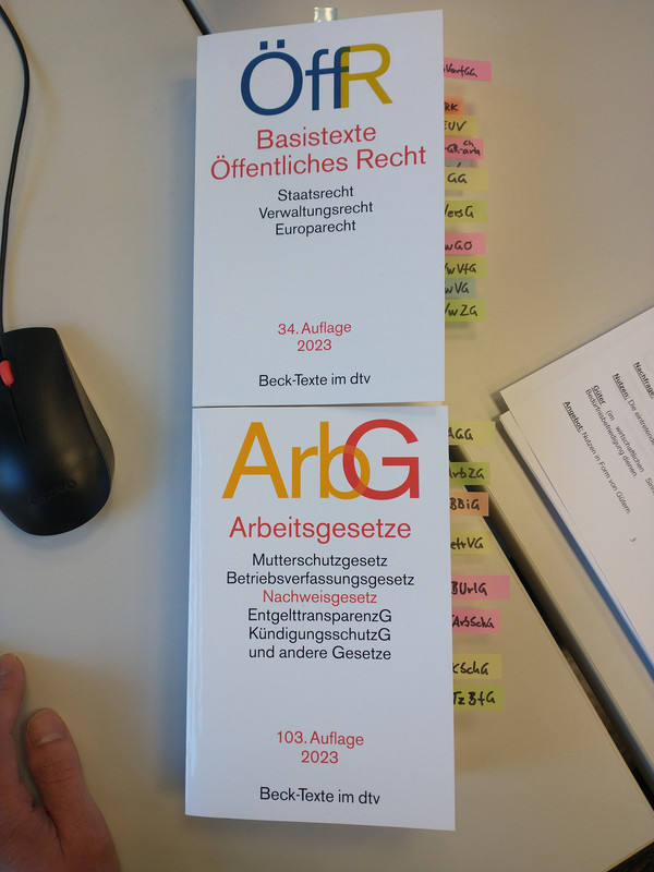 Zwei der Gesetzessammlungen haben wir mit "Klebis" versehen, damit man die relevanten Gesetze schneller findet.